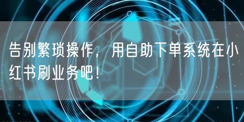 告别繁琐操作!小红书自助下单系统,轻松实现业务快速推广,助您省时省力,享受便捷操作体验。