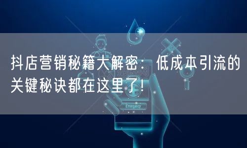 抖店营销秘籍大解密:低成本引流的关键秘诀都在这里了!