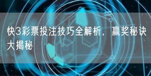 本文将揭示快3彩票的顶级投注技巧,带你了解彩票背后的秘密,掌握赢奖策略,让你在彩票世界中更加从容面对挑战,轻松斩获大奖!