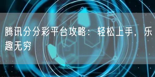 腾讯分分彩平台攻略:轻松上手,乐趣无穷
