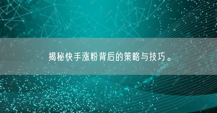 随着社交媒体的普及,各大平台的竞争愈发激烈。快手作为领先的短视频社交平台之一,其粉丝数量增长迅速,背后隐藏着哪些策略与技巧呢?本文将为您一一揭秘。